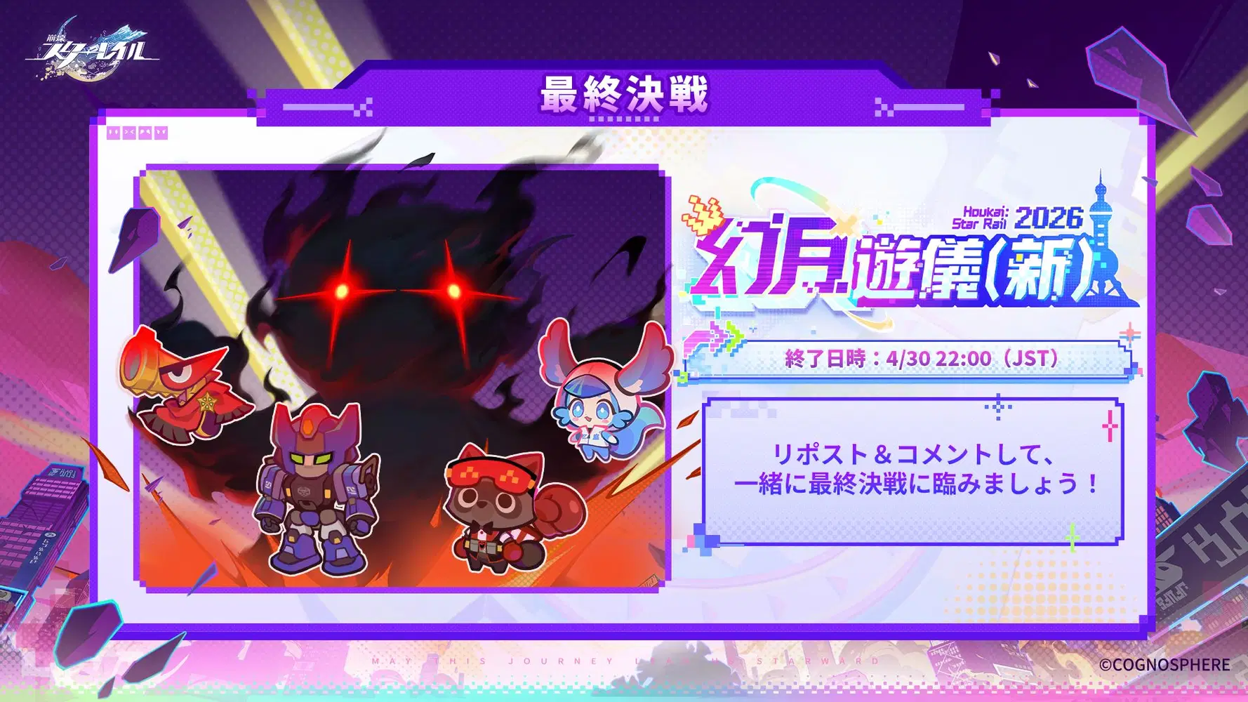 Facebook Twitter LinkedIn Pinterest Bluesky Reddit Threads 幻月遊儀新・最終決戦 期間限定イベント 💥 4大陣営とキメホムムの決戦が迫っています。 オリエンタルパールタワーを防御タワーに改造し、決戦の最終防衛線を築き上げましょう! リポスト&コメント欄に選んだ陣営のスタイルに合った意気込みを残して、 願力を束ねて、一緒に最終決戦に臨みましょう! アクアピースカンパニー ラーメンの愚者 巡川レンジャー ガーデン・オブ・ルーモア 終了日時:4/30 22:00(JST) ※ Webイベントへhttps://hoyo.link/G4EEDe8uf