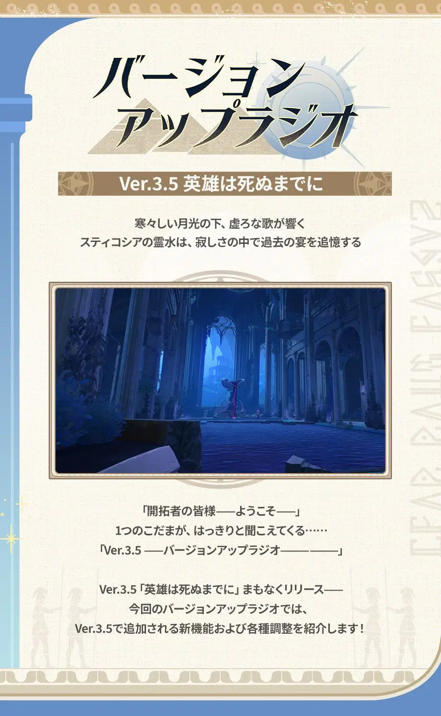 今回のバージョンアップラジオでは、Ver.3.5で追加される新機能および各種調整を紹介します!