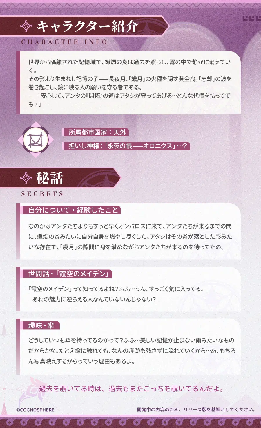 開拓者の皆様、本日は「長夜月(記憶・氷)」のキャラクタープレビューをお届けします。