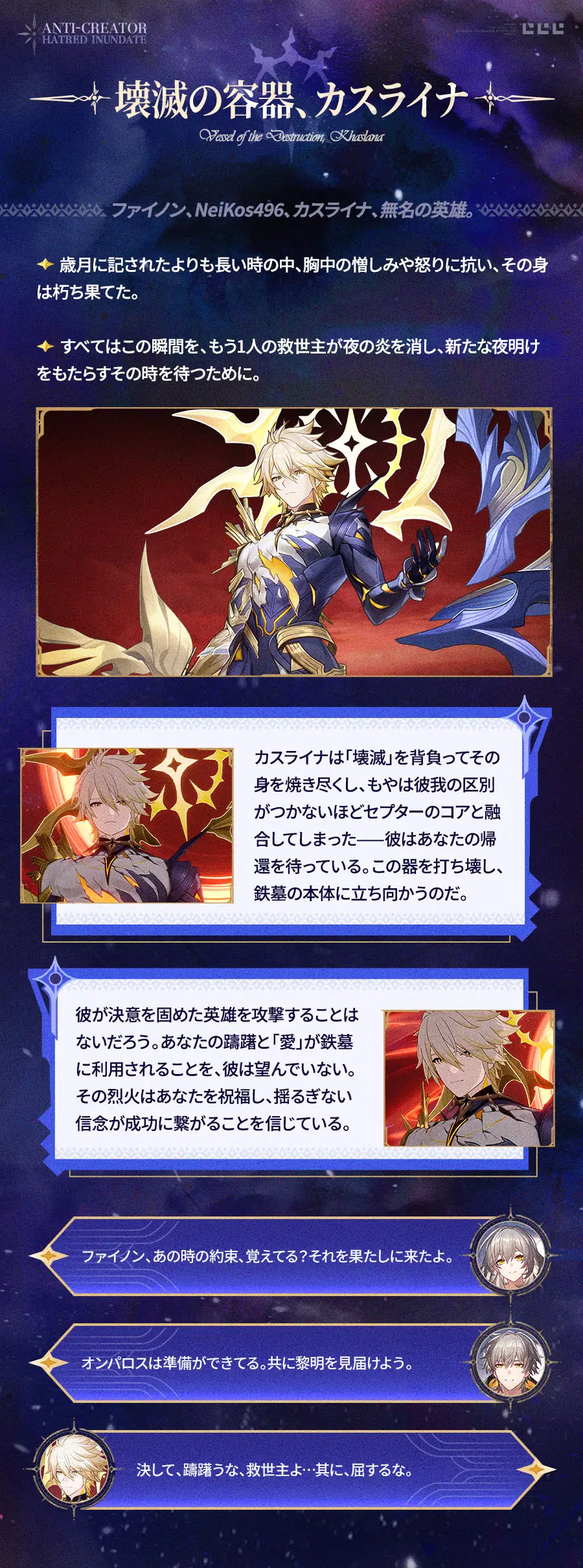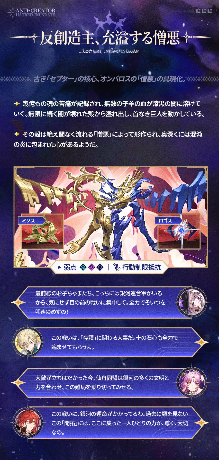 この戦いは、オンパロスだけでなく銀河の未来を決めるものになります。万全の準備を整え——「鉄墓」の化身に立ち向かいましょう。