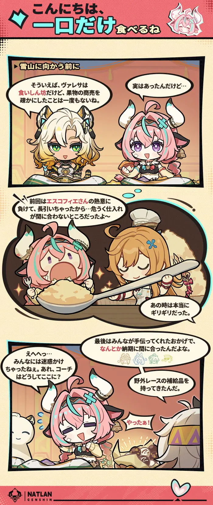 旅人さん、こんにちは!12月23日より開催されるイベント祈願「競争と饗宴」では、「おっとりパワフル!・ヴァレサ(雷)」の出現確率が大幅にUP! さらに、イベント祈願では「百折不撓の熔岩・イアンサ(雷)」「厳罰を与える法の通暁者・シュヴルーズ(炎)」「頭角を現す駿猊・嘉明(炎)」の出現確率も大幅にUPします!