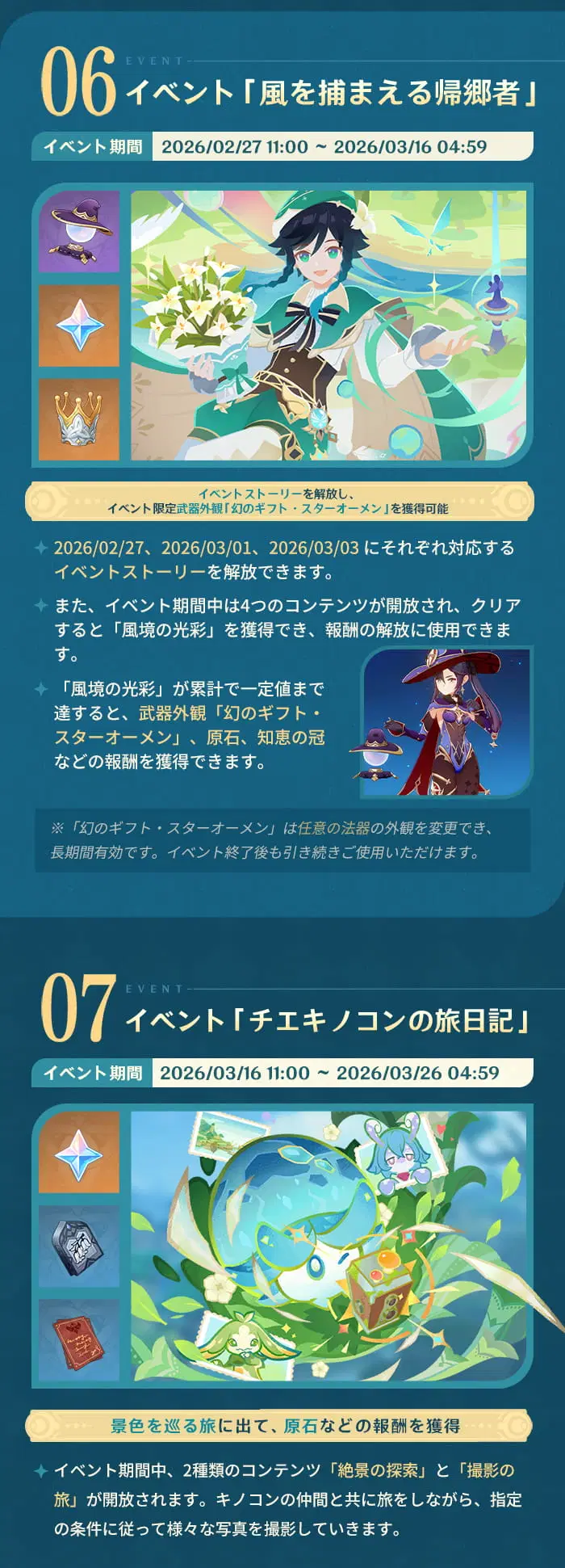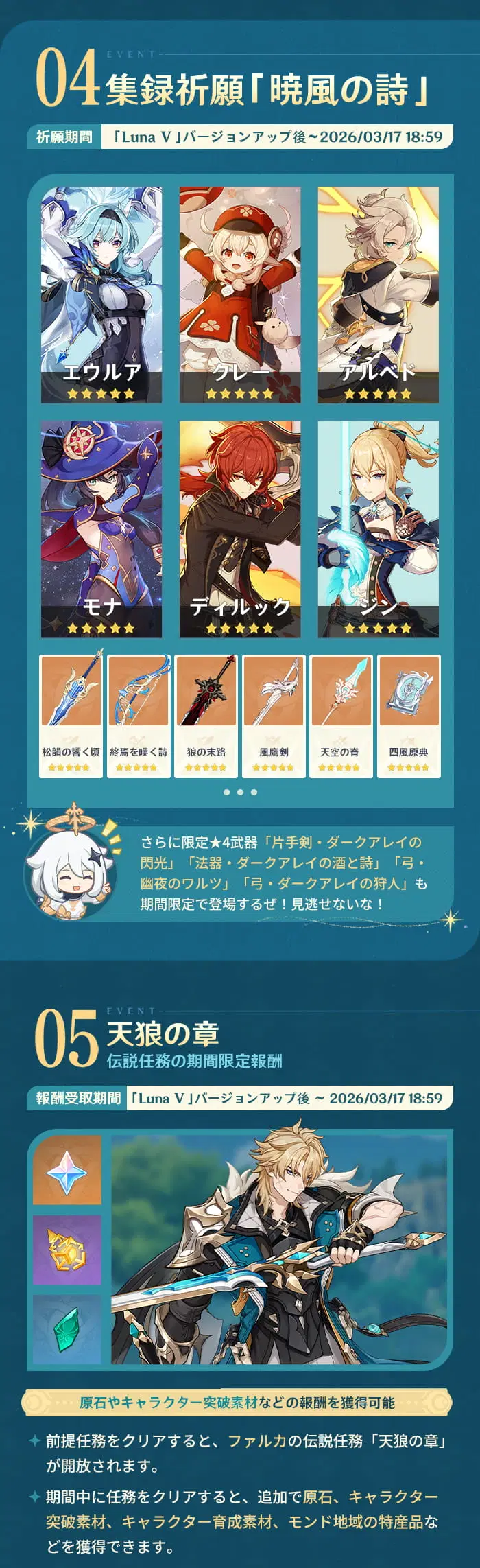 旅人の皆さん、こんにちは!新バージョン「Luna Ⅴ 風を捕まえる帰郷者」がまもなくリリースされます。これから開催されるイベント情報を一緒に見てみましょう!