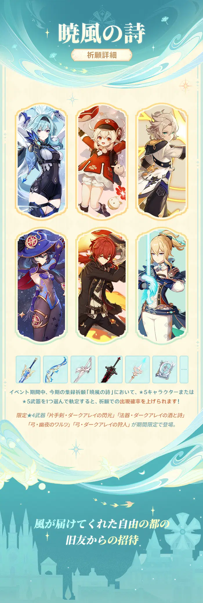 集録祈願「暁風の詩」がまもなく開催されます!集録祈願でより多くのキャラクターや武器を手に入れましょう!