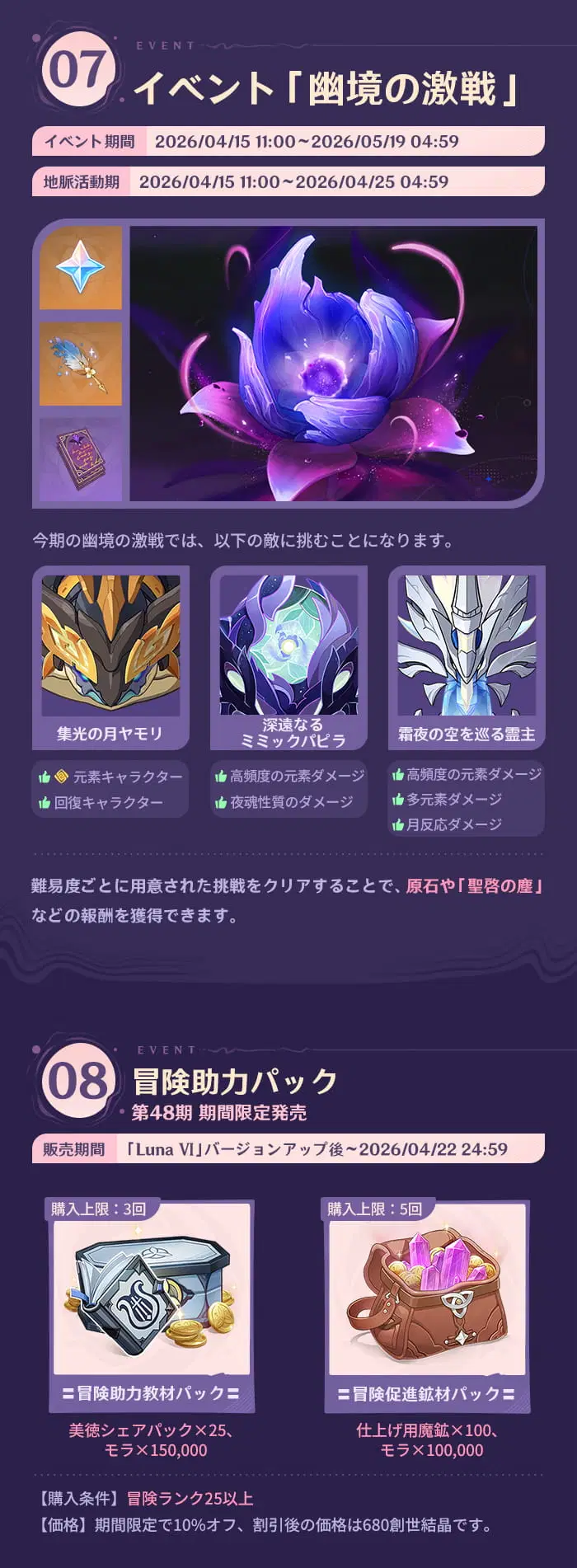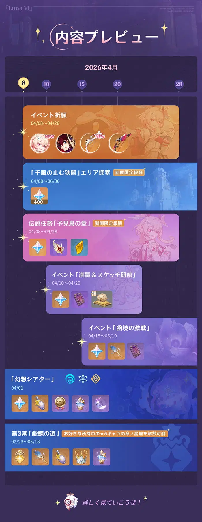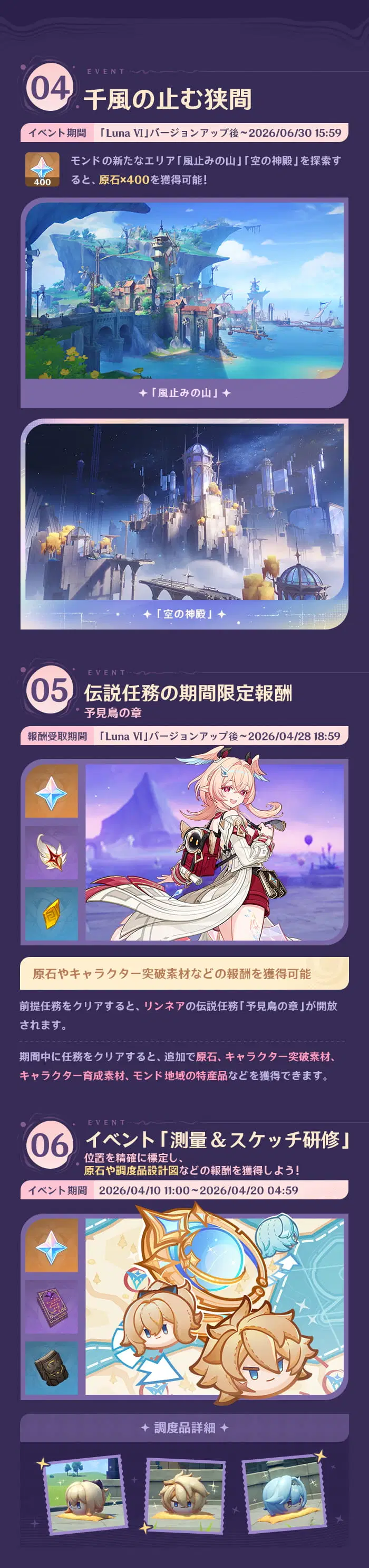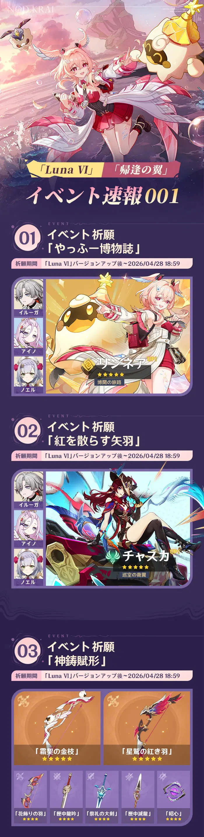 旅人の皆さん、こんにちは!「Luna Ⅵ 帰逢の翼」がまもなくリリースされます。これから開催されるイベント情報を一緒に見てみましょう!